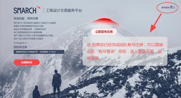如果你已经完成团队账号注册,可以直接点击“账号登录”按钮,进入登录页面,完成登录。