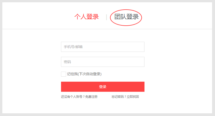 团队账号登录